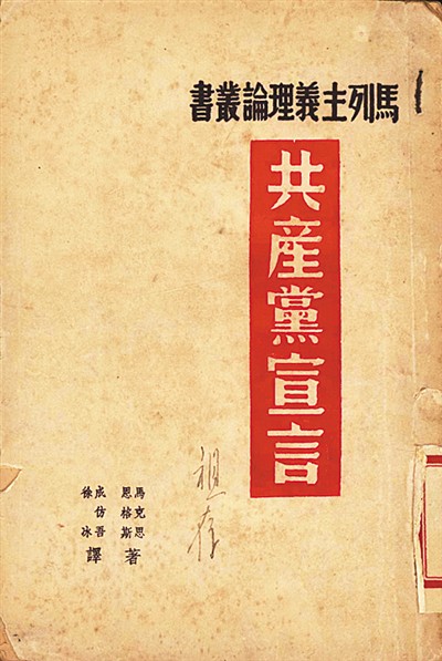 陜北公學首任校長成仿吾曾在法國和德國學習馬克思主義理論,并受中共駐共產(chǎn)國際代表蔡和森委托,翻譯《共產(chǎn)黨宣言》。盡管這部譯稿遺失,卻奠定了他五譯《共產(chǎn)黨宣言》的基礎。人大圖書館收藏了其中3個刊發(fā)本,包括初印版。其中的二譯本,是受中共中央宣傳部委托,在解放區(qū)公開組織翻譯的第一個漢語全譯本??箲?zhàn)期間,該譯本是黨員干部的必讀書籍,也是陜北公學馬列課程的必備教材。