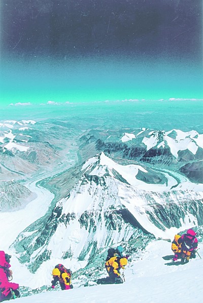 自1953年以來,人類以無與倫比的勇氣和日臻成熟的登山技巧,不斷地向珠穆朗瑪峰進發(fā)。年復(fù)一年的登頂,在喜馬拉雅山脈蒼茫的峰嶺,寫下厚重的英雄史詩。1953年5月29日,新西蘭人埃德蒙·希拉里和向?qū)Уぴ?middot;諾爾蓋,從珠穆朗瑪峰南坡登頂,戴上人類歷史上第一次登頂珠峰的桂冠。1960年5月25日4點20分,中國登山隊隊員王富洲、屈銀華、貢布(藏族)經(jīng)過艱苦卓絕的攀登,終于首次從北坡登上地球最高的山峰珠穆朗瑪峰頂峰。中國人創(chuàng)造了世界登山史的新紀(jì)錄。經(jīng)過多年堅忍不拔的努力,登頂珠穆朗瑪峰從夢想變成現(xiàn)實。從1953年至1999年,1169人次登頂珠峰。從2000年到2015年,5832人次登頂珠峰。到2015年,世界上已有7001人次登頂珠峰。