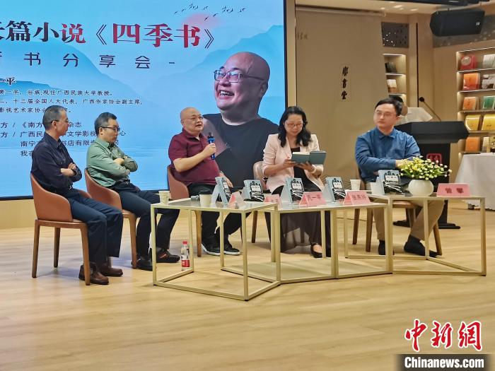 當(dāng)天,由《南方文壇》雜志主辦的凡一平長(zhǎng)篇小說《四季書》新書分享會(huì)在南寧市舉行。凡一平攜新書出席,東西、張燕玲、張柱林、李約熱、朱山坡、田耳等作家、評(píng)論家以及高校師生、文學(xué)愛好者約100人參加。