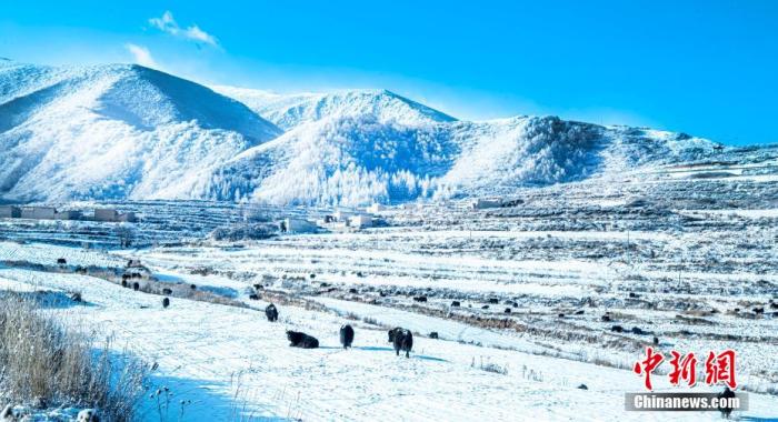 資料圖:初冬時節(jié),蘭州市榆中縣馬坡鄉(xiāng)迎來降雪,一場冬雪過后,村莊田野沐浴在雪景中,藍(lán)天白雪下,似童話世界。張學(xué)江 攝