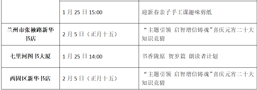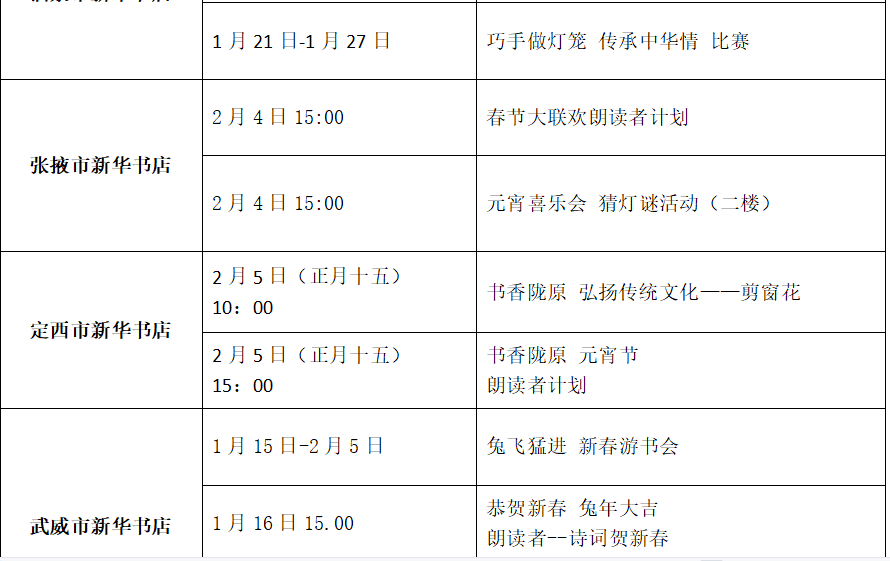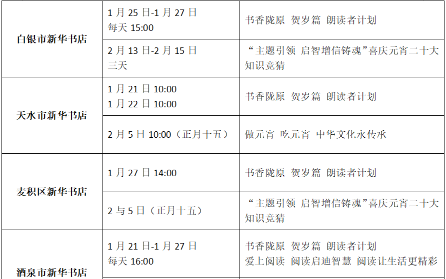 收藏!甘肅省各地新華書店春節(jié)期間活動來了(附表)