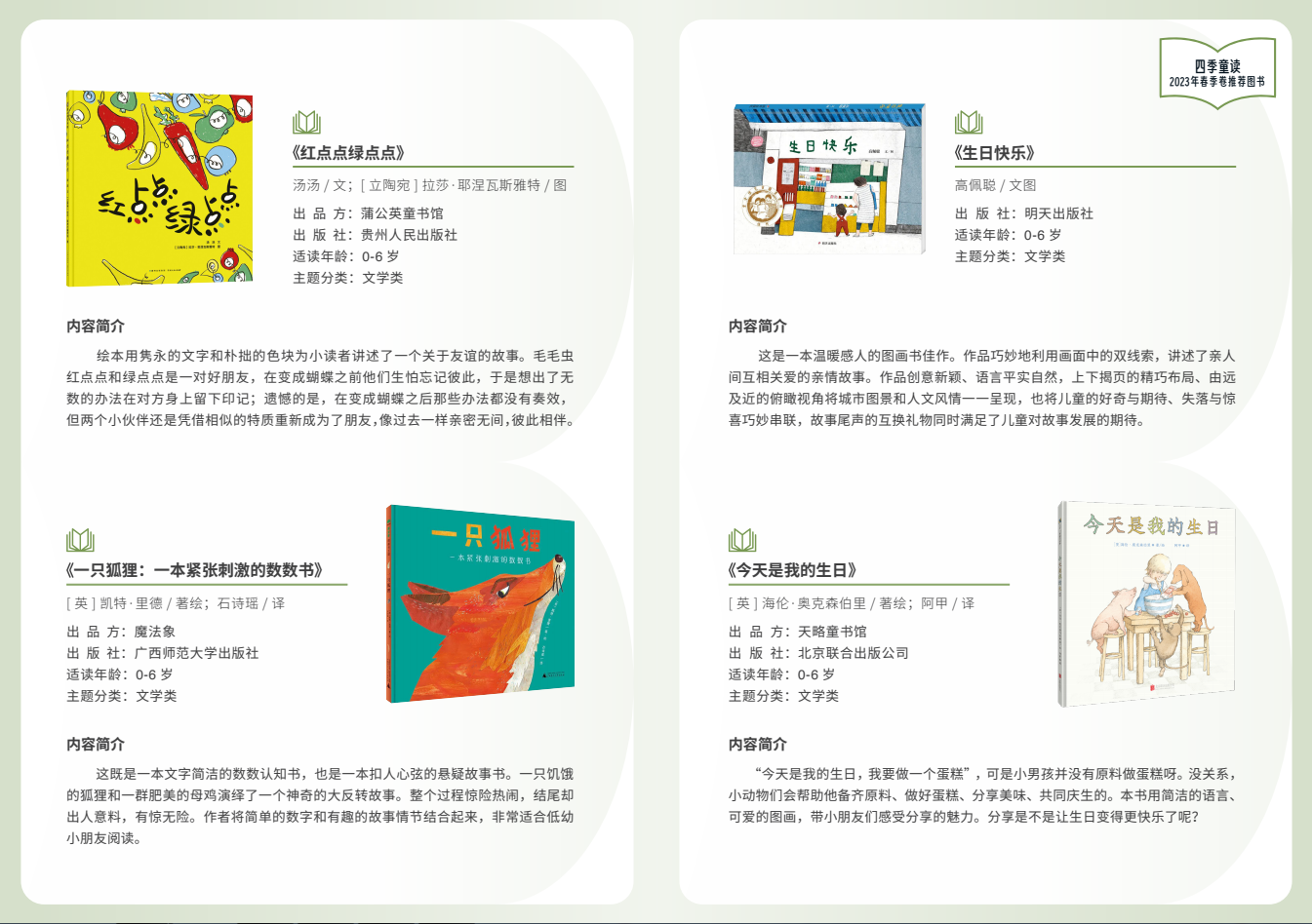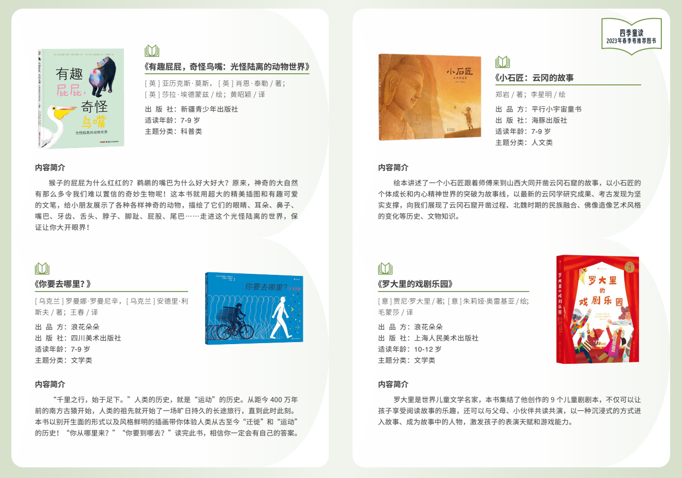 國(guó)家圖書(shū)館發(fā)布2023年“四季童讀”春季卷書(shū)單