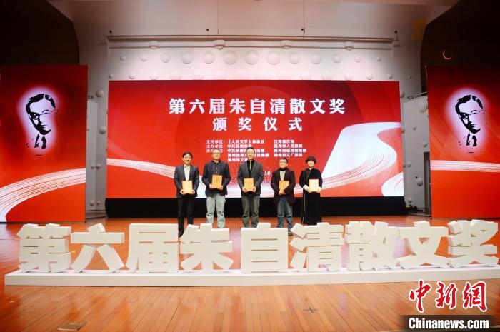中新網(wǎng)揚(yáng)州12月17日電 (記者 應(yīng)妮)第六屆朱自清散文獎16日在揚(yáng)州頒出。韓少功、南帆分別憑借《人生忽然》《村莊筆記》獲得“杰出作家獎”,夏堅勇、陳福民、蘇滄桑分別憑借《慶歷四年秋》《北緯四十度》《紙上》獲得“優(yōu)秀作家獎”,晏明以《揚(yáng)州夜訪錄》獲得“揚(yáng)州籍優(yōu)秀作家獎”。