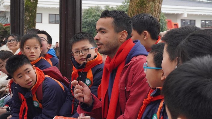 走出場館,中外青年圍坐在雷鋒紀(jì)念館外的長廊暢聊雷鋒精神。在分享初到中國時迷路,被身邊一位“活雷鋒”幫助的故事時,來自阿爾及利亞的留學(xué)生名善深有體會地說到:“真正的善行是發(fā)自內(nèi)心、純粹無私的。”交流中,不一樣的面孔也吸引了來自株洲市荷塘小學(xué)小朋友們的關(guān)注,在文化擺渡者志愿服務(wù)隊的翻譯下,留學(xué)生們與小朋友們打破了語言的壁壘,實(shí)現(xiàn)了關(guān)于雷鋒精神內(nèi)涵的無障礙交流。
