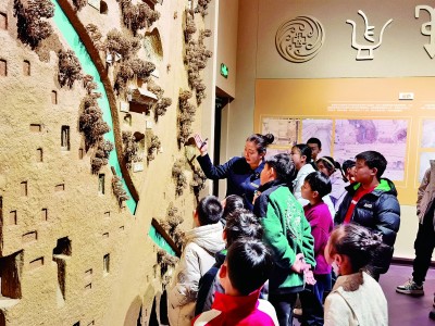 在殷墟博物館新館參加研學活動的孩子們聆聽講解。殷墟博物館供圖