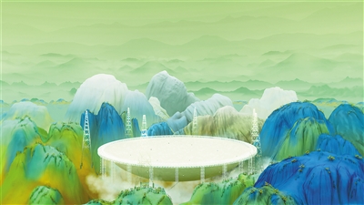 數(shù)字技術(shù)的賦能,進(jìn)一步打開(kāi)青綠山水創(chuàng)作空間。在黨的二十大勝利召開(kāi)之際,人民日?qǐng)?bào)社新媒體中心在全網(wǎng)上線創(chuàng)意動(dòng)畫視頻《新千里江山圖》,數(shù)字技術(shù)與中華優(yōu)秀傳統(tǒng)文化元素相結(jié)合,輔以青綠色彩,鋪展一幅新時(shí)代的“千里江山圖”,生動(dòng)講述中國(guó)故事。還有一些創(chuàng)作者以“藝術(shù)+科技”思維,用數(shù)字藝術(shù)重新演繹青綠山水之美。比如藝術(shù)家靳軍的個(gè)人展覽“數(shù)境等觀”,便呈現(xiàn)了他近年來(lái)以數(shù)字藝術(shù)“轉(zhuǎn)譯”傳統(tǒng)圖像和意境的多組作品。光影流轉(zhuǎn)中,觀眾得以沉浸式體驗(yàn)青綠之美。