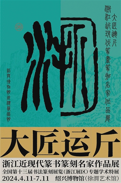 浙江省紹興博物館“大匠運(yùn)斤——浙江近現(xiàn)代篆書篆刻名家作品展”海報。