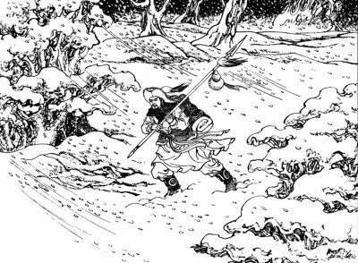 《水滸傳》用豐富細(xì)節(jié)塑造了一個(gè)有血有肉的林沖形象。圖片選自連環(huán)畫《水滸傳·風(fēng)雪山神廟》。資料圖片