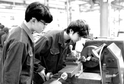 陜西工業(yè)職業(yè)技術(shù)學(xué)院學(xué)生在企業(yè)進行實訓(xùn)。王正攝/光明圖片