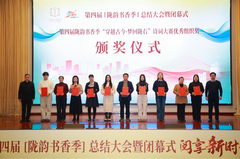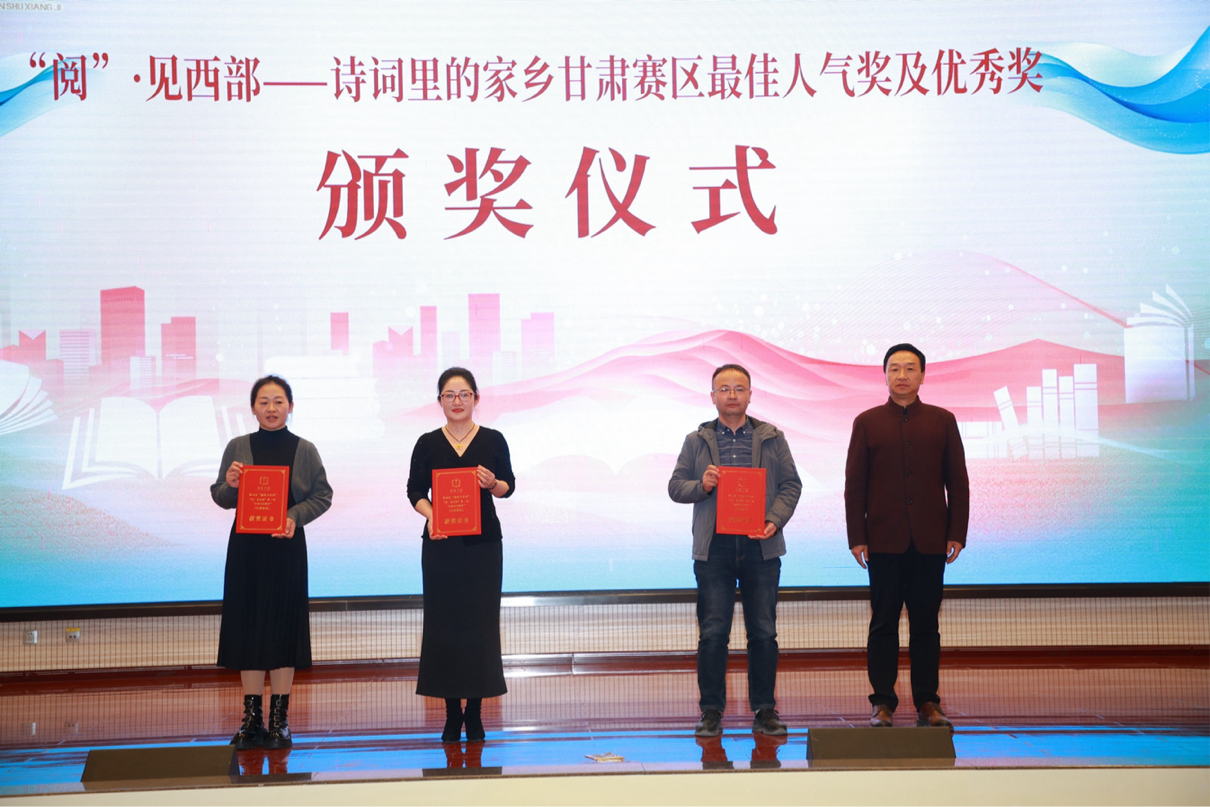 閉幕式上公布并表彰了“優(yōu)秀閱讀推廣活動案例獎(jiǎng)”獲獎(jiǎng)人員、“‘穿越古今·夢回隴右’詩詞大賽優(yōu)秀組織獎(jiǎng)”獲獎(jiǎng)人員、“‘閱·見西部’第一季——‘詩歌里的家鄉(xiāng)’(甘肅賽區(qū))最佳人氣獎(jiǎng)和優(yōu)秀獎(jiǎng)”獲獎(jiǎng)人員。