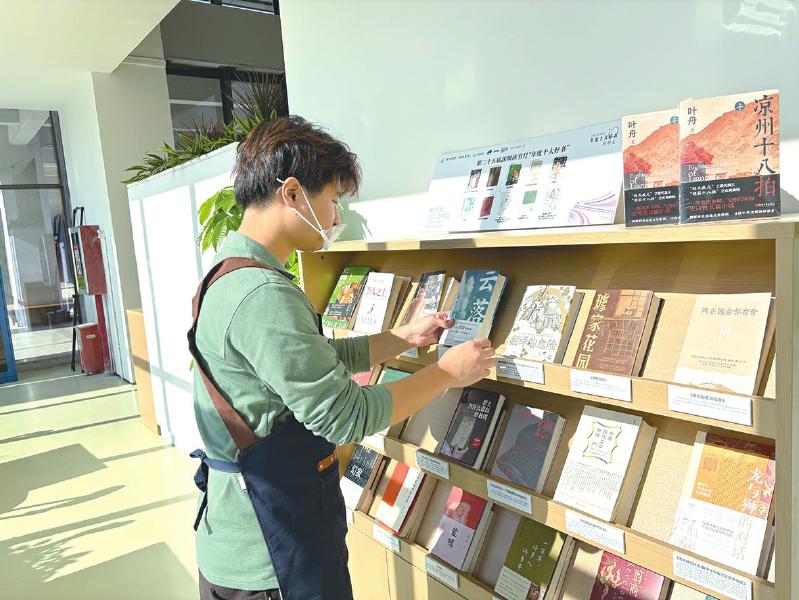 1月1日上午,深圳信息職業(yè)技術(shù)學院湖畔書吧店長蔡錦元在整理書架、碼放圖書。