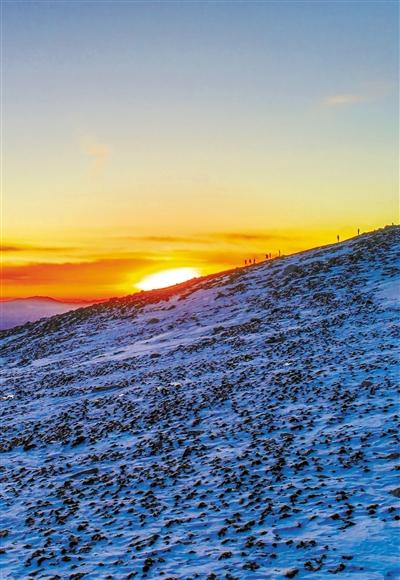 元旦當(dāng)日早上6時(shí)30分,記者乘坐景交車前往巴爾斯圣山核心景區(qū)觀看日出,在抵達(dá)海拔3900米后徒步上山迎接2020年第一縷陽(yáng)光??邕^及膝的雪,踏過堅(jiān)硬的碎石堆,溜過光滑的冰面,抵達(dá)了海拔4100米最佳觀賞日出點(diǎn),等待著新年第一縷陽(yáng)光刺破蒼穹、越過遠(yuǎn)處的雪山之巔照耀大地。7時(shí)50分左右,陽(yáng)光沖破云層,遠(yuǎn)處的雪山像是被鑲了一道金邊,此時(shí)只覺心靈與大山融為了一體,只有靜靜地等待。不知不覺中,陽(yáng)光逐漸刺眼起來,這才意識(shí)到2020年第一抹陽(yáng)光,承載著令人希冀的美好愿望已來到我們身旁。 蘭州晨報(bào)/掌上蘭州記者 黃芃