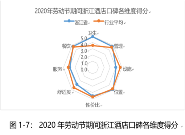 “五一”假期期間,浙江酒店在位置(口碑得分4.9分)、衛(wèi)生(口碑得分4.9分)、餐飲(口碑得分4.8分)方面表現較好,領先行業(yè)平均水平。但在服務(口碑得分 3.9 分)、舒適度(口碑得分3.8分)、設施(口碑得分4.0分)方面表現略有不足,需要引起關注。