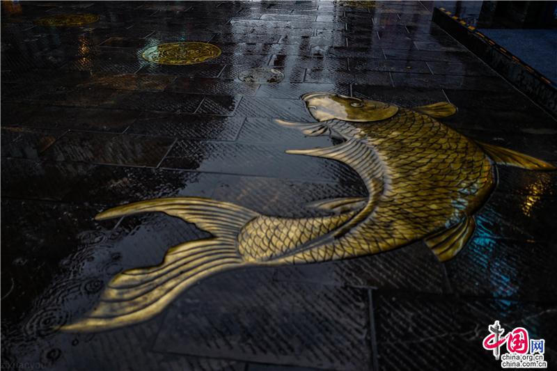 地上的銅質(zhì)錦鯉是“如魚得水”顯得靈動(dòng)而逼真起來……