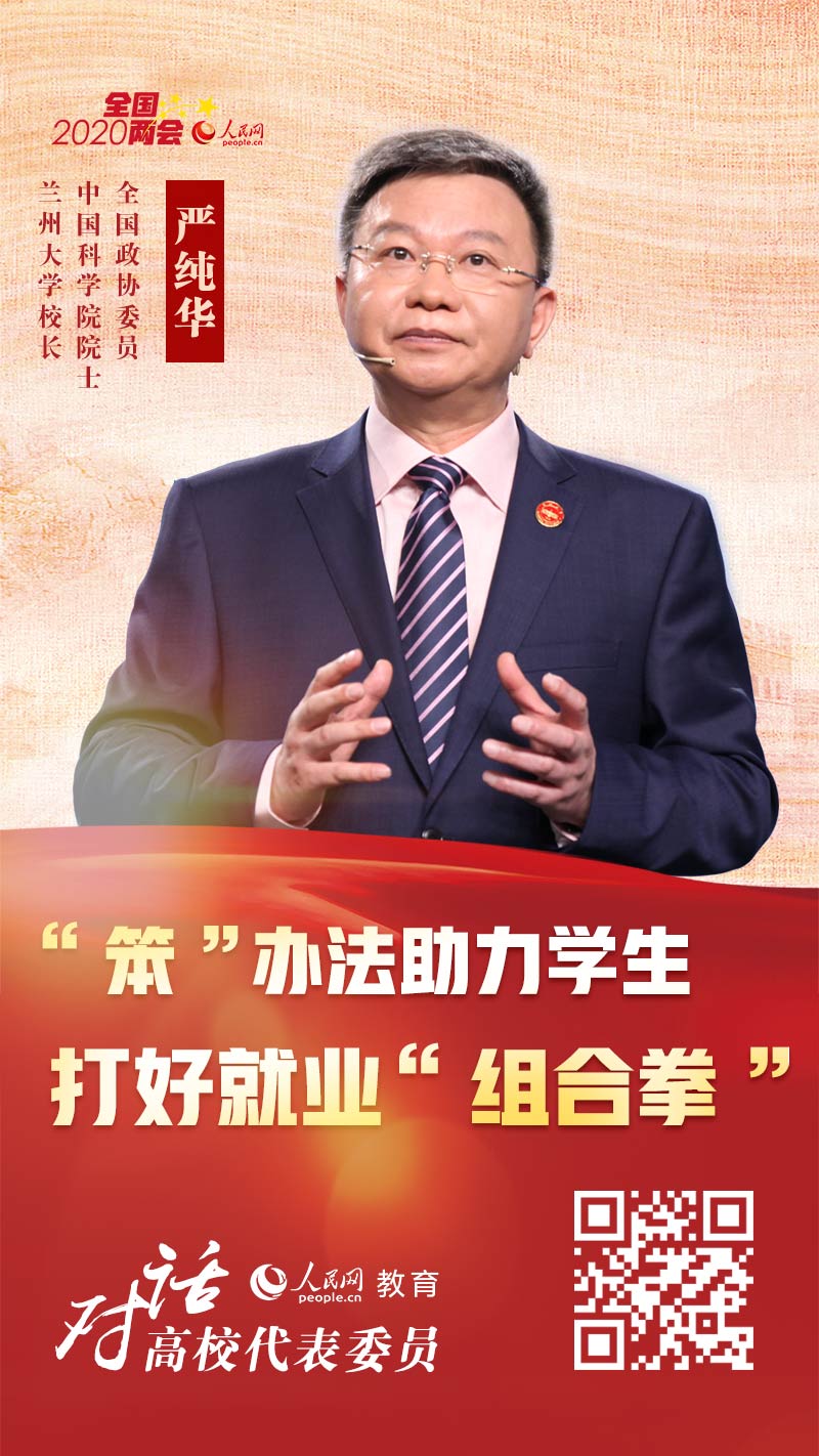 2020年政府工作報告中,“就業(yè)”一詞共出現(xiàn)39次,是歷年報告之最。如何 “穩(wěn)就業(yè)”成為今年的頭等大事。日前,全國政協(xié)委員、中國科學院院士、蘭州大學校長嚴純?nèi)A接受人民網(wǎng)視頻連線訪談,圍繞大學生就業(yè)話題進行了探討和分享。