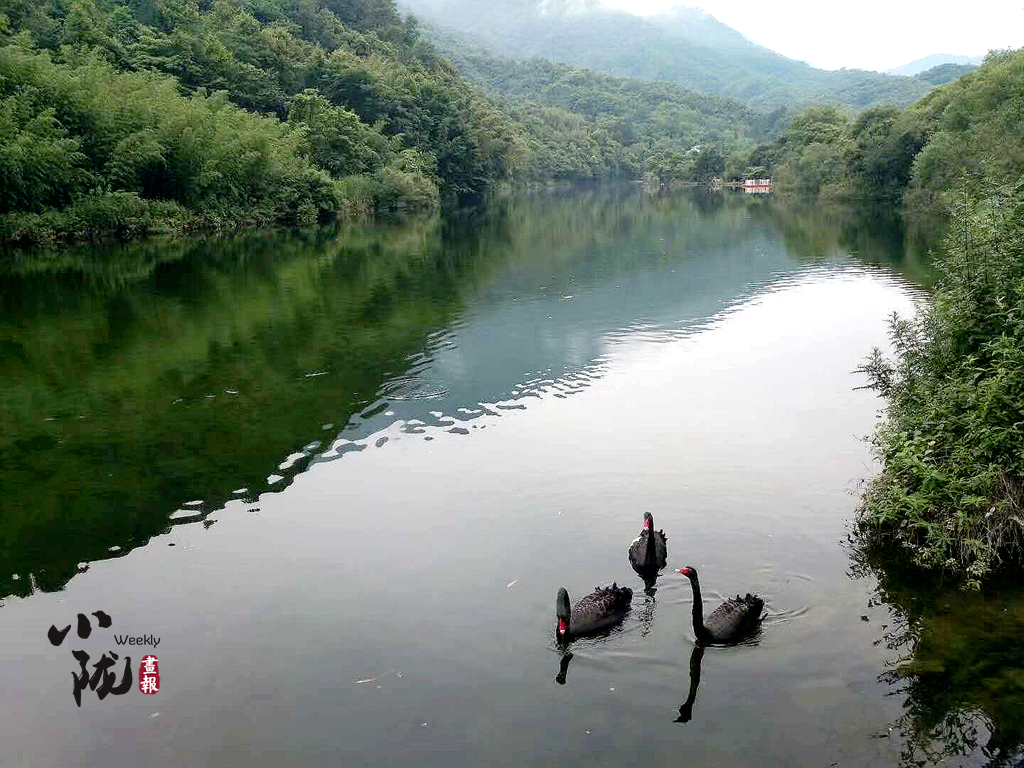 天鵝湖,湖波瀲滟,群山倒映。湖對面遠(yuǎn)處是一片處處竹林,郁郁蔥蔥。當(dāng)游弋在湖面上的三只黑天鵝,映入眼簾時,感覺此景更像一副渾然天成的水墨畫,湖邊是大片的草地,造型奇特的古樹名木參差錯落,石桌與石凳散落其間,靜謐和諧,看書、聊天、放松均是不錯的選擇。