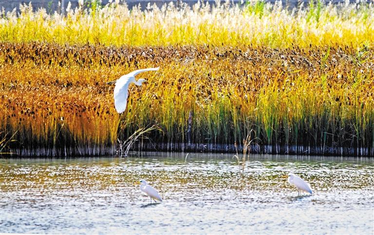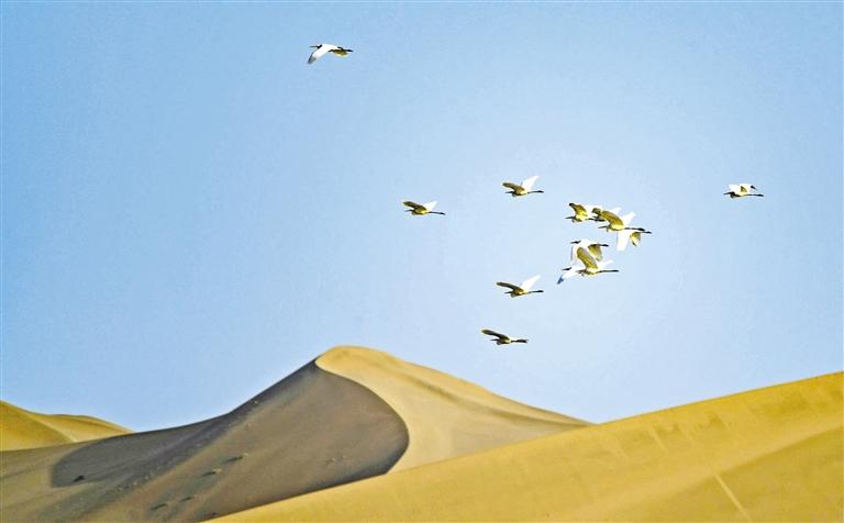 圖說甘肅丨鳴沙山下大漠濕地白鷺起舞