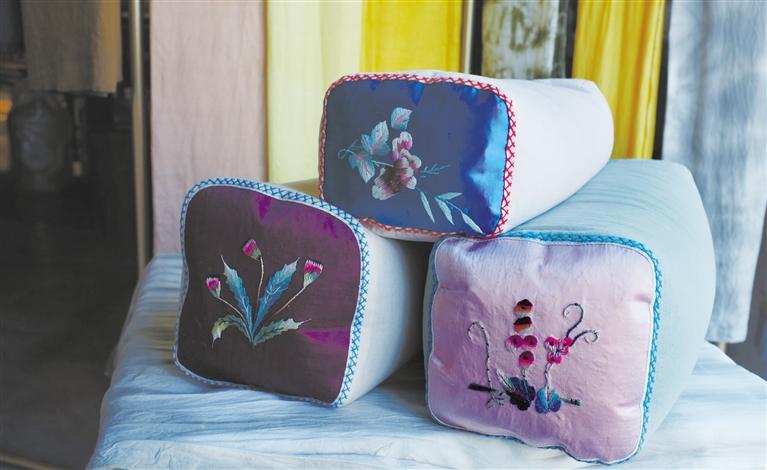 正是因為這樣的思維,祁輝不斷創(chuàng)新,保留中草藥古法染色獨特技藝的同時,對傳統(tǒng)載體進行擴展,設(shè)計出具有現(xiàn)代感的圖案。她把扎染和灰染、蠟染、印染等元素的圖案,用于絲巾、布包、茶席、壁掛等日常用品上,每一樣產(chǎn)品,既有中草藥傳統(tǒng)古法染色的厚重,又透著時尚氣息。