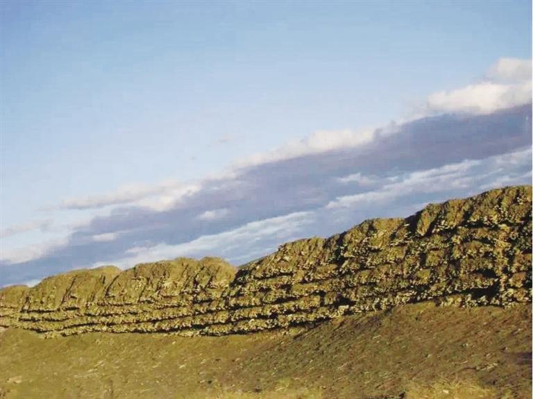花海漢長城遺址位于玉門市花海鎮(zhèn)西泉村頭墩西側(cè)至二墩東側(cè),西起三墩,東至花海頭墩,全長約3.5公里,長城基寬約2.4米,用沙石、紅柳分層夯筑,最高部分保存有紅柳7層,是河西走廊漢代長城遺址中保存較完好的地段之一。為有效保護(hù)漢長城花海段遺址,近年來,玉門市積極實(shí)施漢長城防護(hù)工程,對該段因長期遭受風(fēng)力侵蝕,病險較為嚴(yán)重的長城本體進(jìn)行了搶險加固,在花海鎮(zhèn)頭墩西側(cè)至二墩河壩間1.5公里地段內(nèi)敷設(shè)了6層全封閉刺鋼絲網(wǎng),并在漢長城內(nèi)外兩側(cè)安裝防護(hù)欄、樹立保護(hù)標(biāo)志、埋設(shè)界樁界碑,有效遏制了人為破壞,對漢長城的保護(hù)發(fā)揮了積極作用。