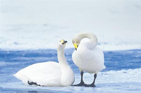 我國有三種天鵝,在甘肅都有分布,其中更常見的是大天鵝。大天鵝不在甘肅繁殖,而要飛往遙遠的西伯利亞等地,但會途經(jīng)甘肅的諸多濕地,并于此歇腳補充能量。