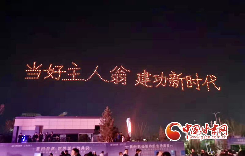 活動(dòng)現(xiàn)場(chǎng),千架無(wú)人機(jī)編隊(duì)以天空為幕,以“熒光”為筆,在金城上空分別繪就“慶祝中國(guó)共產(chǎn)黨成立100周年”“蘭州鐵橋”“奧體中心”等數(shù)幅壯美畫面,集中反映近年來(lái)蘭州市在經(jīng)濟(jì)社會(huì)領(lǐng)域取得的成就。