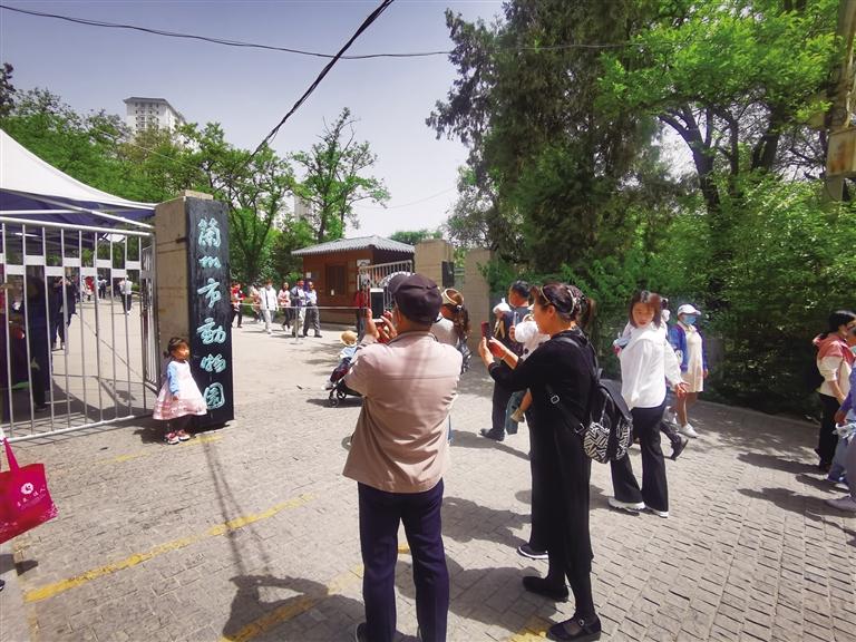 “我要和動(dòng)物園的大門(mén)合影” “快來(lái)給我和‘蘭州市動(dòng)物園’的大牌子拍張照”……5月7日10時(shí)許,前往蘭州市動(dòng)物園游玩的市民絡(luò)繹不絕,大門(mén)口懸掛著的略顯斑駁的黑底綠字的“蘭州市動(dòng)物園”的門(mén)牌,仿佛是最能觸動(dòng)人們記憶的“坐標(biāo)點(diǎn)”,大家排隊(duì)再和它照張相成為進(jìn)園的固定儀式。