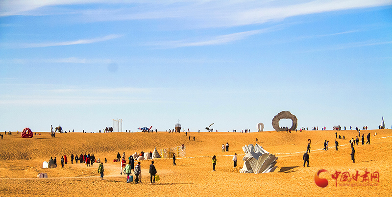 “這些沙漠雕塑作品以全新的生態(tài)理念、文化符號和藝術(shù)風(fēng)格,形象生動地傳播人沙和諧共生理念,展現(xiàn)大漠與雕塑的完美融合、文化與生態(tài)的強(qiáng)大張力,為當(dāng)?shù)厣衬幕糜巫⑷肓怂囆g(shù)因子。” 來自張掖市山丹縣的游客陳春說,沙漠雕塑已經(jīng)成為烙印著民勤精神的文化藝術(shù)地標(biāo),使沙漠煥發(fā)出新的生命力,凸顯藝術(shù)與生態(tài)結(jié)合的強(qiáng)大震撼力,帶給游客前所未有的視覺沖擊和游玩享受。