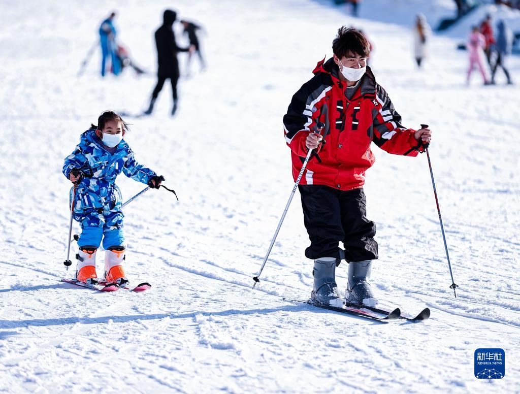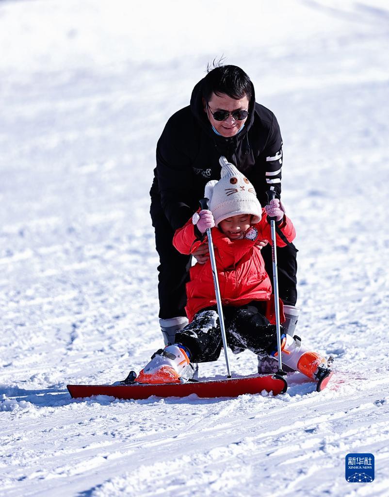 2月19日,市民在寧夏銀川市閱海滑雪場滑雪。