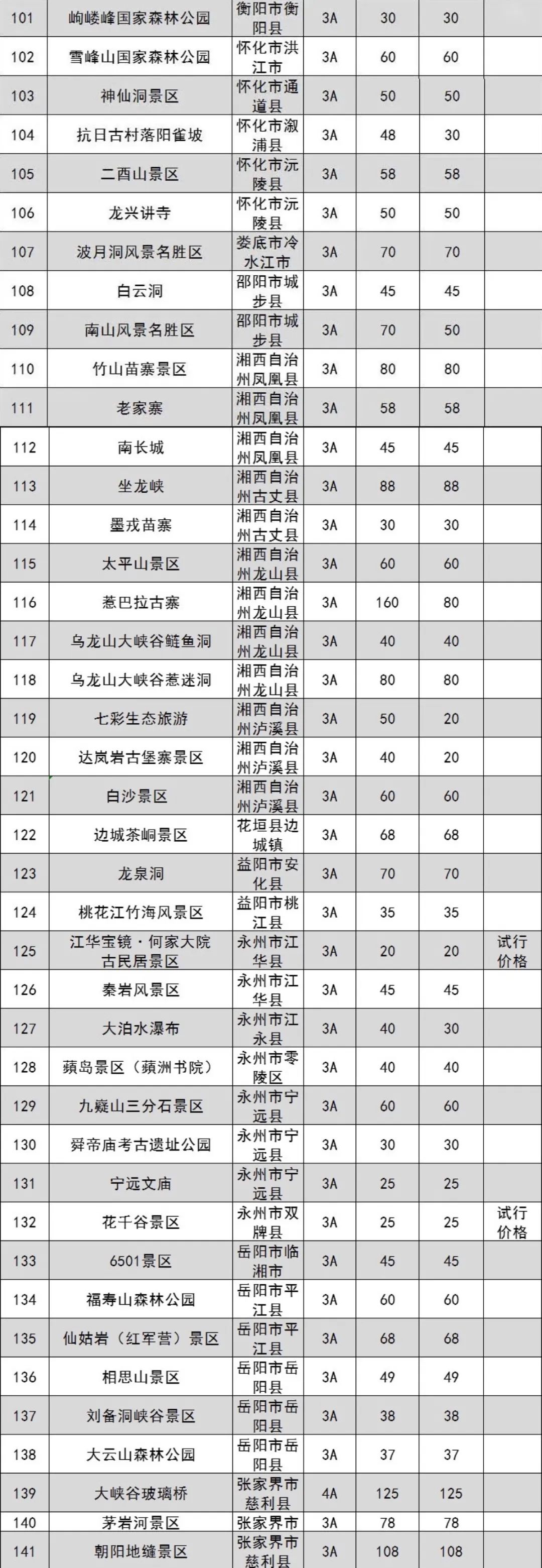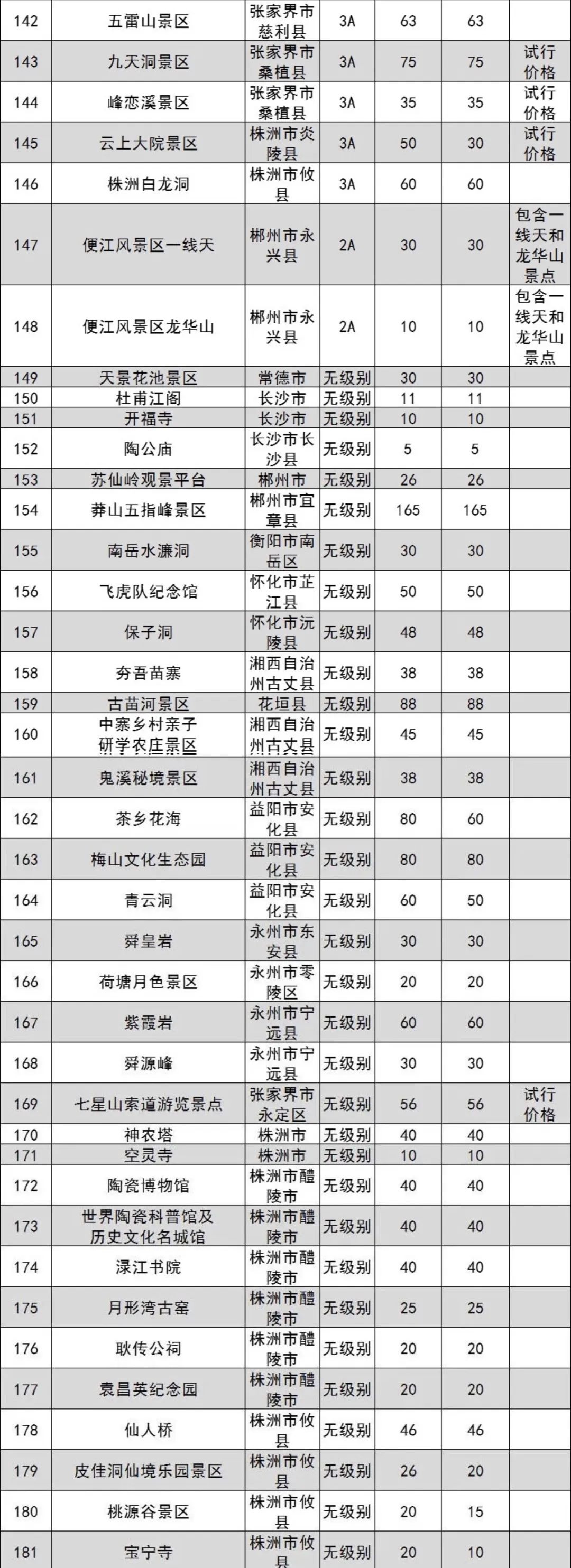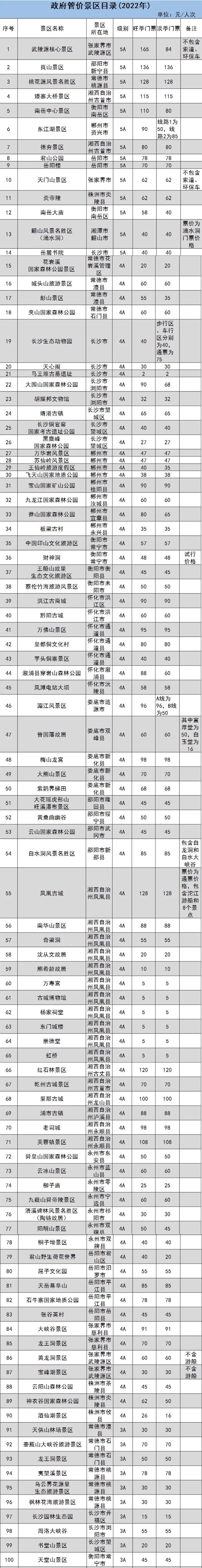 原標(biāo)題:湖南省政府管價(jià)景區(qū)2022年門(mén)票出爐 共181個(gè)