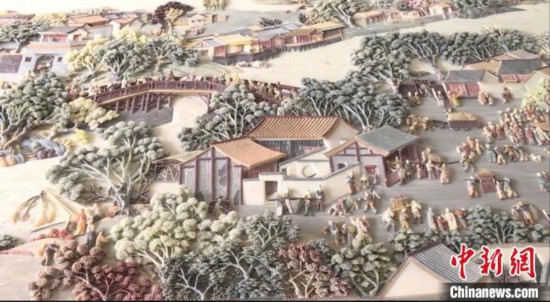 浙江民間工藝大師創(chuàng)作巨幅彩石鑲嵌《清明上河圖》