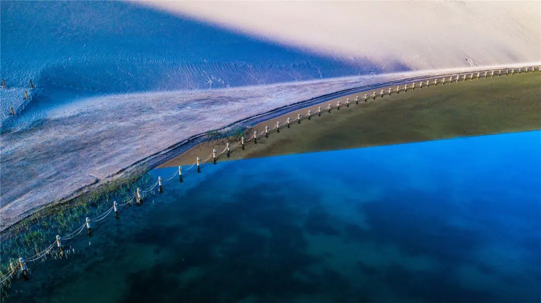 今年4月,敦煌市氣候溫潤(rùn),雨水較多,鳴沙山月牙泉景區(qū)草木蔥蘢,月牙泉水位持續(xù)上升。從4月23日在月牙泉航拍的圖片可以看出,月牙泉水域面積逐漸擴(kuò)大,泉水已滲出月牙泉圍欄之外近1米的距離。據(jù)悉,3年前月牙泉泉水一直保持在圍欄之內(nèi)。