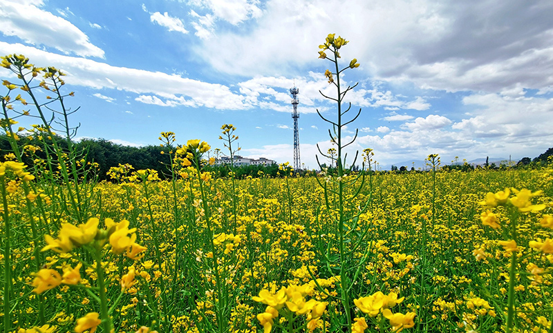 以大地為布,金黃的油菜花開滿鄉(xiāng)間,與鄉(xiāng)村民居交相輝映,構(gòu)成一幅美麗的鄉(xiāng)村畫卷,也開成了鄉(xiāng)村振興的“致富花”。去年,沙河鎮(zhèn)西寨村、五三村依托“一戶一塊田”高標(biāo)準(zhǔn)農(nóng)田建設(shè)后的便利條件,大力調(diào)整產(chǎn)業(yè)結(jié)構(gòu),積極引進(jìn)專業(yè)合作社在本村建立蔬菜種植基地。今年,沙河鎮(zhèn)種植油菜300多畝,從5月中旬開始,油菜花便陸續(xù)開放,現(xiàn)在已經(jīng)進(jìn)入全盛時期。