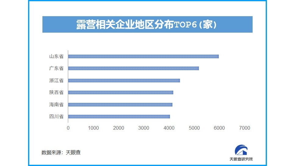 人們被疫情壓抑了的旅游需求,在露營(yíng)市場(chǎng)得到釋放。根據(jù)天眼查大數(shù)據(jù),我國(guó)目前已有超過6.6萬(wàn)家與露營(yíng)相關(guān)的企業(yè),近3年露營(yíng)相關(guān)企業(yè)注冊(cè)總量增長(zhǎng)迅猛。在地域分布上,山東的露營(yíng)相關(guān)企業(yè)數(shù)量最多,近6000家。廣東、浙江、陜西、海南、四川等緊隨其后,均超過4000家。