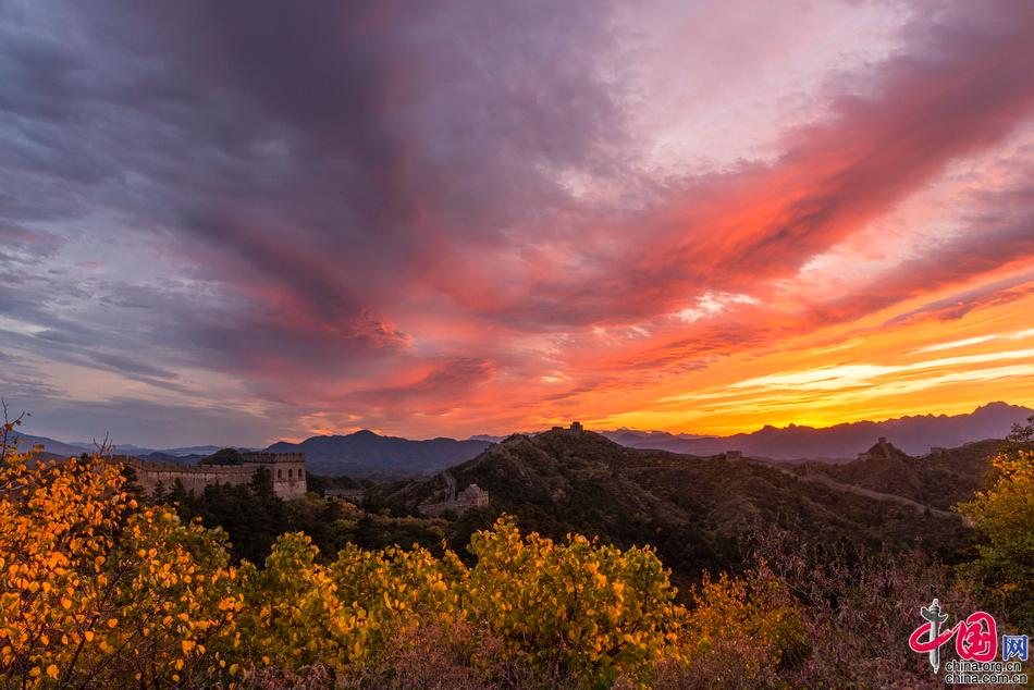 金山嶺長(zhǎng)城層嶺盡染萬山紅遍 最是秋好霜重色濃