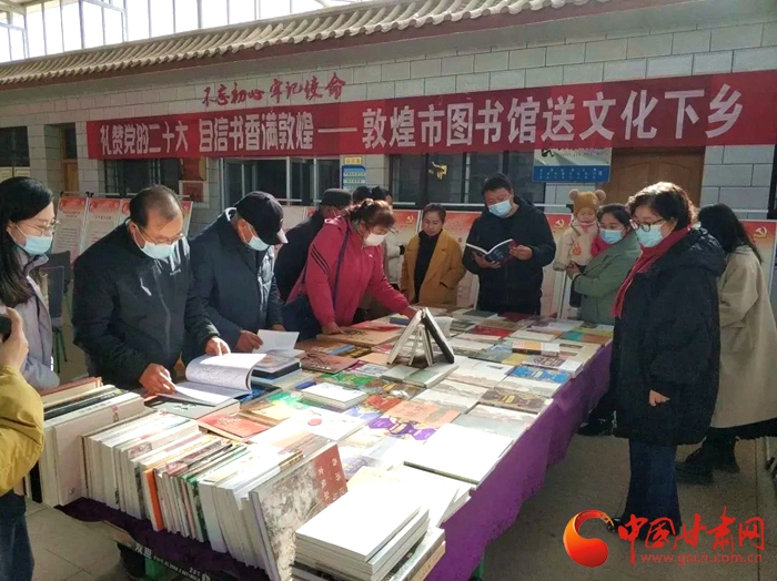 中國甘肅網(wǎng)11月15日訊 (本網(wǎng)記者 張?zhí)m琴)為了深入學習宣傳貫徹黨的二十大精神,近日敦煌市圖書館組織開展“禮贊黨的二十大,自信書香滿敦煌”送文化下鄉(xiāng)活動受到當?shù)厝罕姎g迎。據(jù)了解,活動將在敦煌市各鄉(xiāng)鎮(zhèn)持續(xù)進行,通過黨的二十大主題圖片展和敦煌精品圖書展相結(jié)合,利用文化惠民下基層的方式,向基層群眾宣傳黨的二十大精神,豐富人們的精神文化生活。
