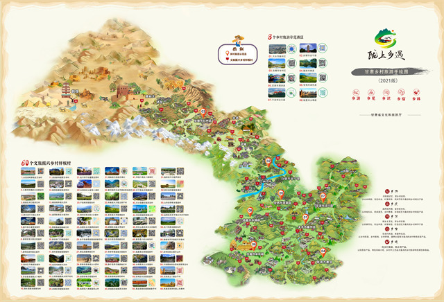 ——鄉(xiāng)村旅游。甘肅旅游,70%以上的旅游資源集中在農(nóng)村。近年來,全省文旅系統(tǒng)累計投資12億元,共打造省級鄉(xiāng)村旅游示范村310個,創(chuàng)建鄉(xiāng)村旅游示范縣14個,文旅振興鄉(xiāng)村樣板村120個,培育鄉(xiāng)村旅游合作社470個,38個村入選建全國鄉(xiāng)村旅游重點(diǎn)村,3個鄉(xiāng)鎮(zhèn)入選全國首批鄉(xiāng)村旅游重點(diǎn)鄉(xiāng)鎮(zhèn)、6個村入選第三批全國鄉(xiāng)村旅游重點(diǎn)村名錄,2家民宿創(chuàng)建為首批全國甲級旅游民宿。美麗鄉(xiāng)村及特色民宿已成為省內(nèi)外游客停留和消費(fèi)的首選地,甘南扎尕那村、隴南花橋村、慶陽天富億村、天水孫集村、平?jīng)鲽P凰村、臨夏大川村等一大批示范村已成為省內(nèi)外游客的熱門打卡地,美麗鄉(xiāng)村正在成為全省綠色經(jīng)濟(jì)的新型引擎。其中,2019年,甘肅鄉(xiāng)村旅游接待游客5918萬人,收入175億元,鄉(xiāng)村旅游占到全省文化旅游半壁江山,讓老百姓身邊青山綠水真正成了“金山銀山”。2020年全國鄉(xiāng)村旅游及民宿工作現(xiàn)場會、“一帶一路”美麗鄉(xiāng)村國際論壇在甘肅舉辦,甘肅鄉(xiāng)村旅游一枝獨(dú)秀、異軍突起,受到社會各界高度贊揚(yáng)和廣泛關(guān)注。2021年,甘肅鄉(xiāng)村旅游游客接待量達(dá)1.31億人次,實現(xiàn)鄉(xiāng)村旅游收入390.33億元,分別恢復(fù)至疫情前的103.20%和114.80%,顯著高于國內(nèi)旅游的整體恢復(fù)比例。值得一提的是,全省文旅系統(tǒng)在大力發(fā)展鄉(xiāng)村旅游的同時,堅持把非遺工坊建設(shè)也作為重中之重,積極創(chuàng)新探索“非遺+扶貧”模式,打造融入當(dāng)代審美的非遺品牌,搭建扶貧產(chǎn)品通往市場的平臺,全省累計建成非遺扶貧就業(yè)工坊106家,共有11家非遺工坊納入全國消費(fèi)扶貧產(chǎn)品目錄和數(shù)據(jù)庫,認(rèn)定省級以上非遺就業(yè)工坊93家,涉及各級傳統(tǒng)技藝類非遺代表性項目77項,分布在全省11個市州46個脫貧縣區(qū),吸納就業(yè)6000多人;年均組織開展“非遺過大年、文化進(jìn)萬家”民俗展演活動1000多場次,極大豐富了廣大群眾精神文化生活。