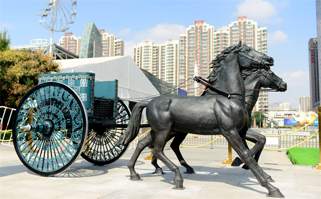 ——文物活化利用工程。作為全國文物大省,甘肅省文旅廳深入學(xué)習(xí)領(lǐng)會、認(rèn)真貫徹落實習(xí)近平總書記關(guān)于“讓文物活起來”的重要論述精神,持續(xù)激活文物資源和文化遺產(chǎn)蘊(yùn)含的創(chuàng)新創(chuàng)造基因,不斷提高展示傳播水平,讓文物說話,讓歷史說話,讓文化說話,已經(jīng)成為全省文旅工作者的生動實踐。正在加快敦煌研究院“典范”“高地”建設(shè),推進(jìn)長城、長征、黃河國家文化公園建設(shè)。實施中華文明探源工程和“考古中國”等重大項目,以甘肅秦文化和西戎文化考古成果為原型復(fù)制“戰(zhàn)國豪車”,賦能文旅產(chǎn)業(yè)。由甘肅省文旅廳組織制作的戰(zhàn)國戎人車輿,嚴(yán)格依照馬家塬戰(zhàn)國戎人貴族墓地出土古車式樣,采用銅雕髹漆等技藝,再現(xiàn)了戰(zhàn)國戎人車輿風(fēng)采,體現(xiàn)了甘肅文旅系統(tǒng)融入“一帶一路”倡議、秉承絲路精神、復(fù)興絲綢之路、構(gòu)建人類命運(yùn)共同體的文化自覺。戰(zhàn)國戎人車馬以文創(chuàng)的形式與甘肅彩車一道復(fù)原展出,即刻走進(jìn)大眾視野,成為甘肅文旅和省會蘭州的又一張靚麗新名片、城市新地標(biāo)。