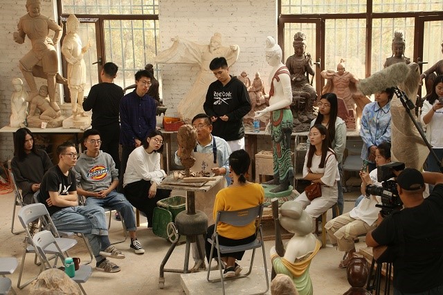 在這個(gè)占地30畝的工匠村中,有雕塑展館、雕塑工坊、繪畫展館、機(jī)動(dòng)展館、大匠之道、游學(xué)中心、非遺劇場等7個(gè)場館。