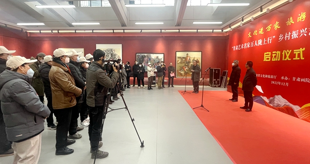 12月17日上午,“甘肅藝術名家百人隴上行”鄉(xiāng)村振興藝術創(chuàng)作工程采風活動在甘肅畫院正式啟動,來自全省各地的藝術家從蘭州黃河之濱,奔赴甘南、隴南兩地重點旅游示范村開展創(chuàng)作采風活動。省委宣傳部副部長、省文旅廳黨組書記何效祖出席啟動儀式并講話。省文化和旅游廳黨組成員、副廳長萬學科主持啟動儀式,甘肅畫院院長王萬成,甘肅文旅集團黨委副書記、工會主席王寧等出席啟動儀式。
