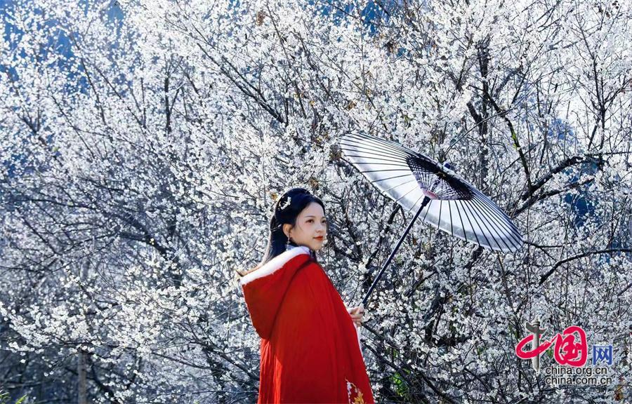 一朵梅花寓五福,一山梅花賀新春。梅原里,游客們或賞花祈福、或獨自品溫,或拍照打卡,盡情享受賞梅樂趣。還有不少游客,為了應景,更是穿著古風漢服或少數民族服飾,沉浸式打卡梅花節(jié),游客林女士說:“古裝配梅花,清麗脫俗,既感受到傳統(tǒng)文化之美,也為賞梅之旅增添了色彩。”