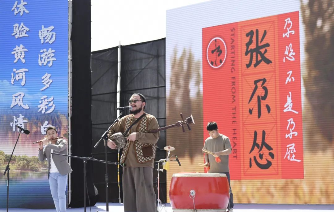 白銀市靖遠(yuǎn)籍民謠音樂人張尕慫和他的團(tuán)隊(duì)在旅游節(jié)上為觀眾演唱《沒有黃河我活不下》。多年來,他始終堅(jiān)守初心,帶著作品向全國乃至全世界宣傳甘肅,宣傳家鄉(xiāng)白銀。喬麗霞 攝