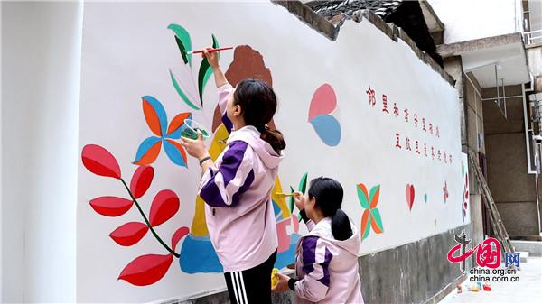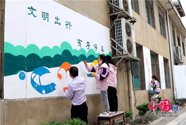 現場,大家手持畫筆和顏料板,相互分工協(xié)作,以墻為紙,認真細致的設計墻繪內容,筆起筆落間,一幅幅栩栩如生、色彩絢麗的城市文明新畫卷躍然墻上。