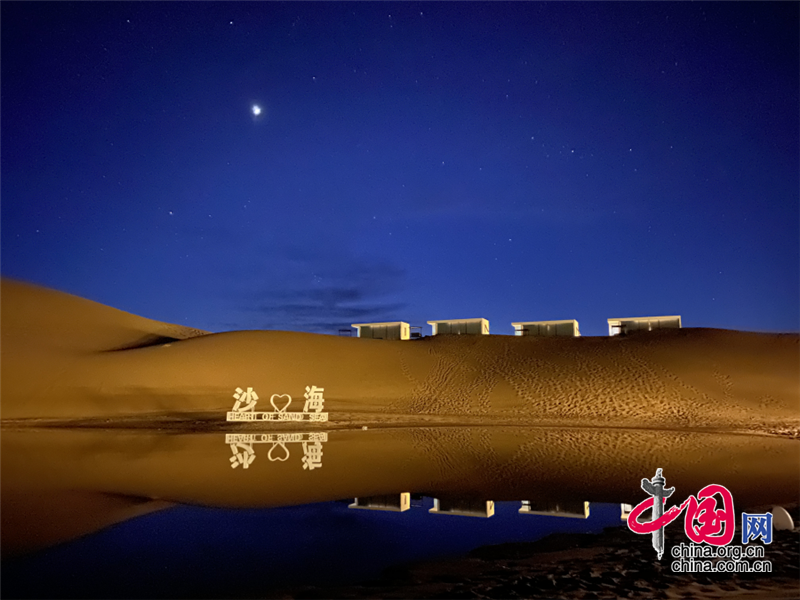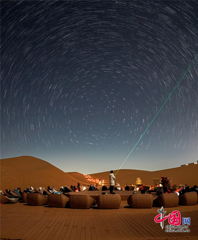 在沙漠區(qū),游客晨觀大漠日出,昏賞沙海夕陽(yáng),夜晚宿在星星酒店,感受躺在床上看星星的奇妙體驗(yàn),在星咖啡手工制作星星原木版畫(huà),在五行沙療室滋養(yǎng)生命的每一個(gè)細(xì)胞,在觀星谷跟著星空講師春看獅子座、夏觀銀河、秋尋仙女座、冬追獵戶(hù)座,期待與一場(chǎng)流星雨的不期而遇。