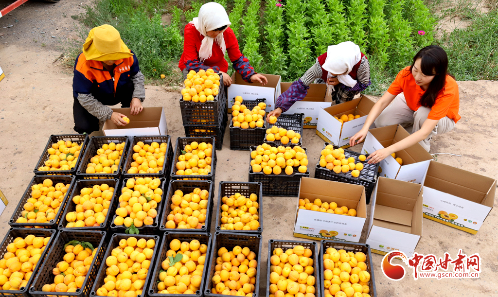 連日來(lái),張掖市甘州區(qū)石崗墩灘一專業(yè)合作社種植的杏梅進(jìn)入成熟采摘期,工作人員正在緊張忙碌地采摘、分揀、包裝,運(yùn)送到客戶手中。