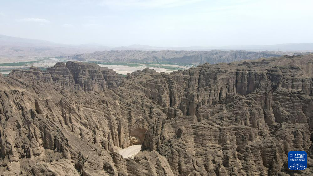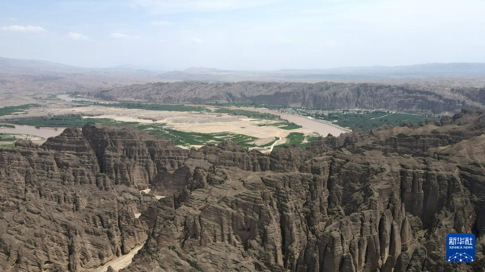 這是位于甘肅省白銀市景泰縣中泉鎮(zhèn)龍灣村的黃河石林景觀。黃河石林千峰競奇、峽谷蜿蜒,與黃河遙相呼應,形成山環(huán)水轉、動靜結合的自然奇觀(7月11日攝,無人機照片)。新華社記者 張可任 攝