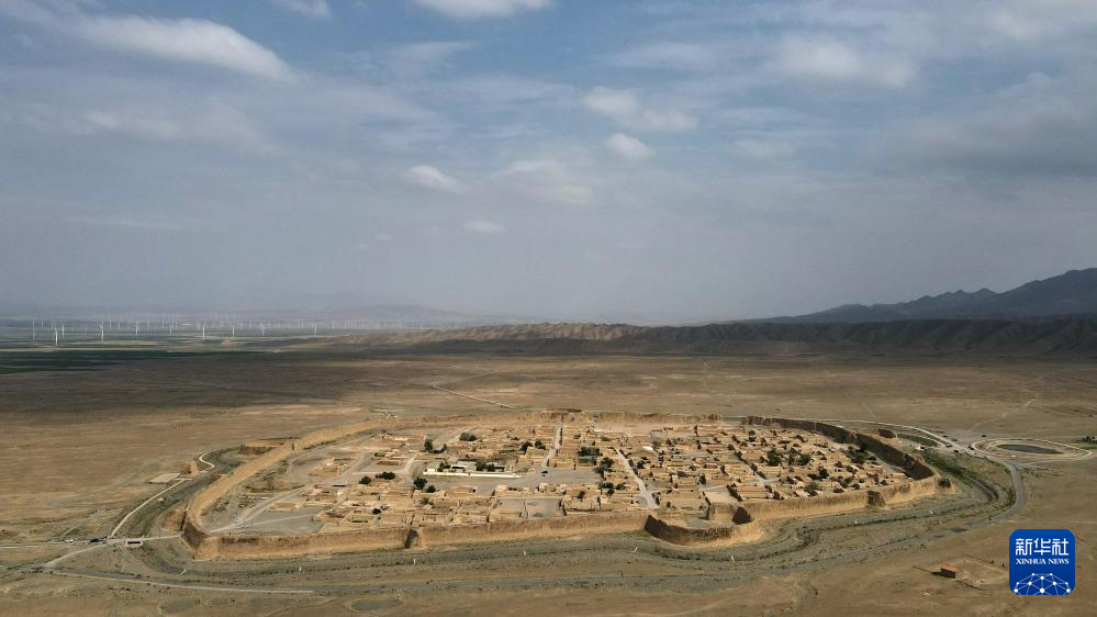 這是位于甘肅省白銀市景泰縣寺灘鄉(xiāng)的永泰古城。永泰古城始建于明萬歷年間,為當時的軍事要塞,因形似金龜,又名“永泰龜城”。古城城圍周長1.7公里,高12米,2006年被命名為全國重點文物保護單位(7月11日攝,無人機照片)。新華社記者 陳斌 攝