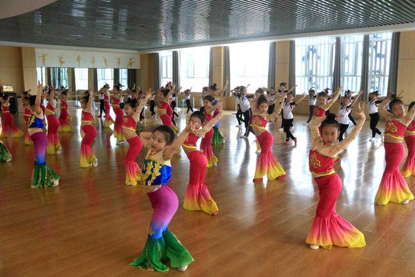 敦煌市西關(guān)小學舞蹈社團的學生練習敦煌舞。張曉亮 攝