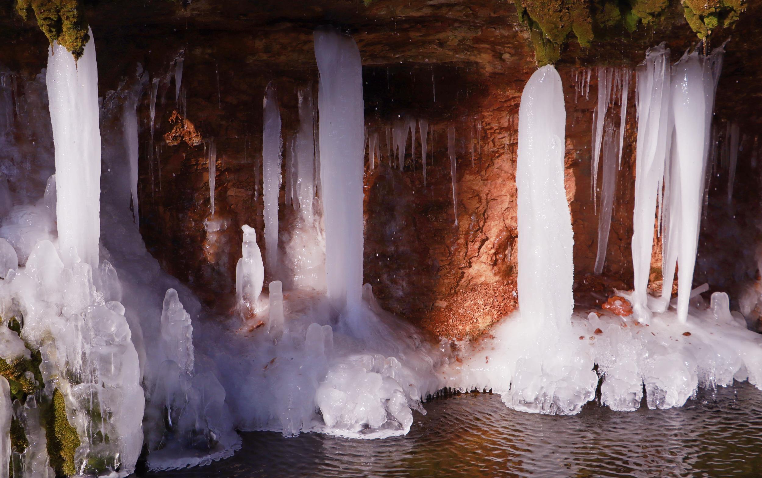 連日來,崇信縣持續(xù)降溫,AAAA級旅游景區(qū)龍泉寺泉水凝結(jié)成奇特秀麗的冰掛、冰柱、冰花美景,懸掛于山間,如萬把銀色寶劍垂吊,展現(xiàn)著冰肌雪骨的風(fēng)姿,似盞盞熒光閃爍,在陽光的照耀下熠熠生輝、耀眼奪目,引來不少游客拍照觀賞。(崇信縣融媒體中心記者:孫淑霞 張百耀)