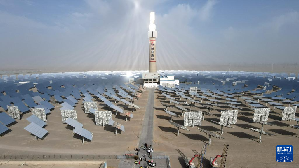 1月18日,研學團隊學員在甘肅省敦煌市光電產業(yè)園區(qū)開展研學活動(無人機照片)。新華社發(fā)(張曉亮 攝)