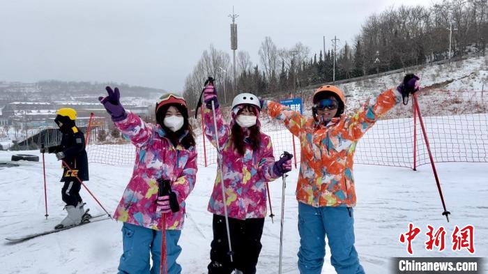 圖為臺胞青年在雪場拍照留念。王牧雨 攝